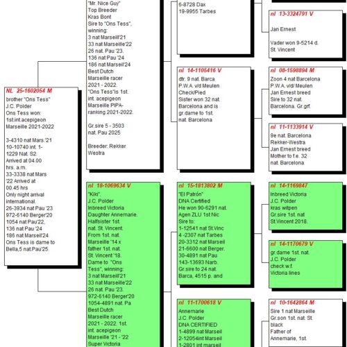 - Loc 1– 21.562 nat. Bergerac, Mijnis Gijsen (tată direct Jan Polder, Victoria/Witstaart)