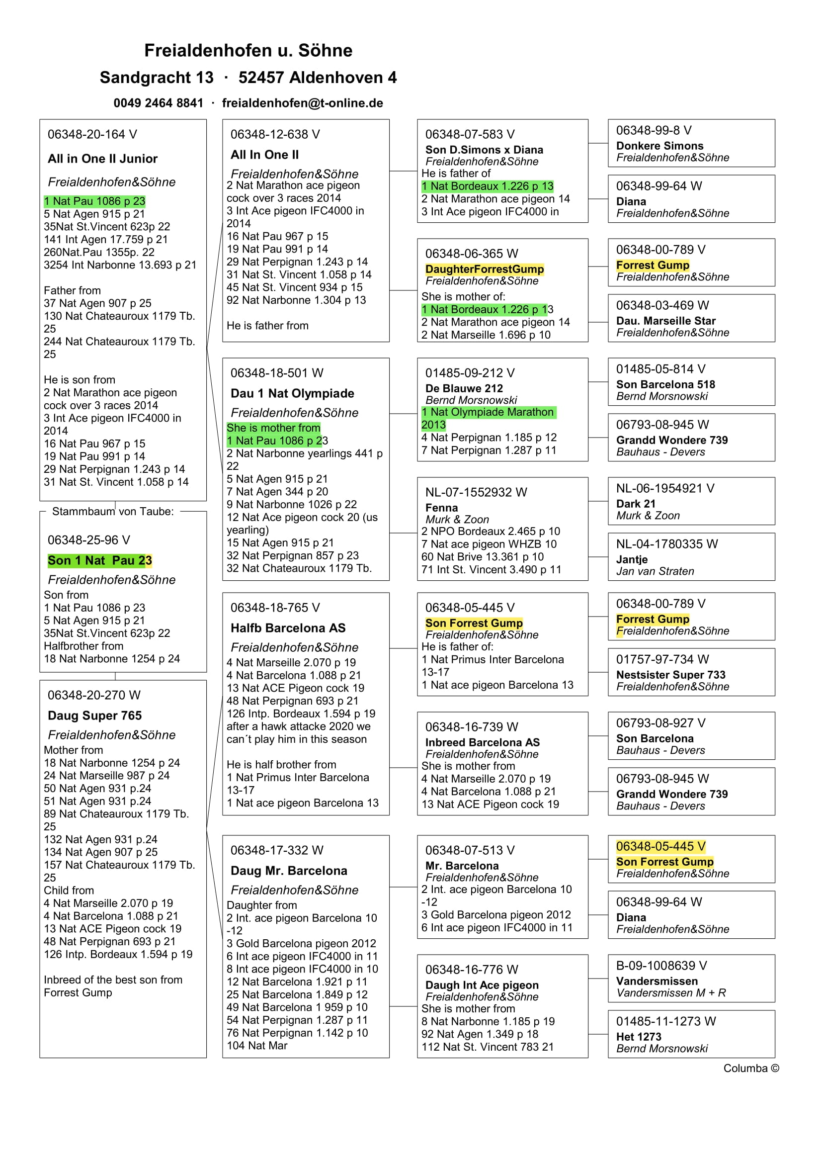 “Porumbeii se afla in crescatoria Freialdenhofen si vor veni in Romania la finalul licitatiei. Taxa de transport este 30 EUR/porumbel, si include transportul Germania- Romania si livrarea pe teritoriul Romaniei. Sexul porumbeilor nu este garantat, acesta fiind unul estimat de catre crescator in mod individual si independent”